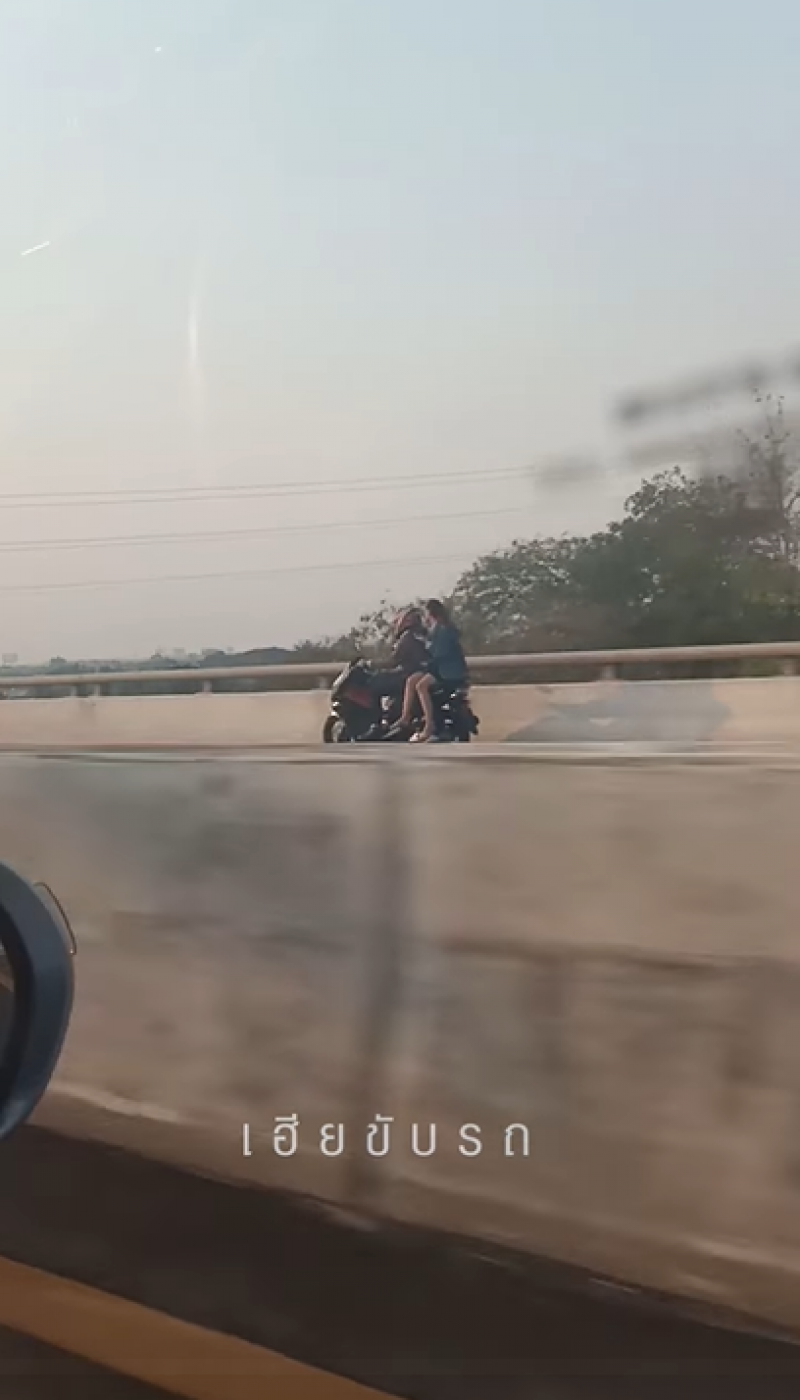 หนุ่มสาวขี่รถขึ้นสะพานลอยฟ้า