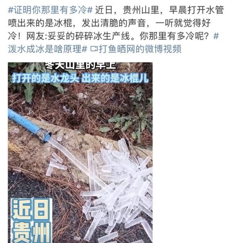 จากกรณีที่ในโลกออนไลน์ ได้มีผู้ใช้บัญชีทวิตเตอร์รายหนึ่ง ออกมาโพสต์คลิปสายยางฉีดน้ำ ซึ่งเป็นน้ำแข็งที่ไหลออกมา โดยระบุว่า "เช้านี้ที่ดอยอินทนนท์ น้ำไหลออกมาเหมือนน้ำแข็งหลอดเลย #ดอยอินทนนท์หนาวมาก" ซึ่งสร้างความฮือฮาเป็นอย่างมากในโลกออนไลน์ มีคนรีทวิตต่อกันเป็นจำนวนมาก