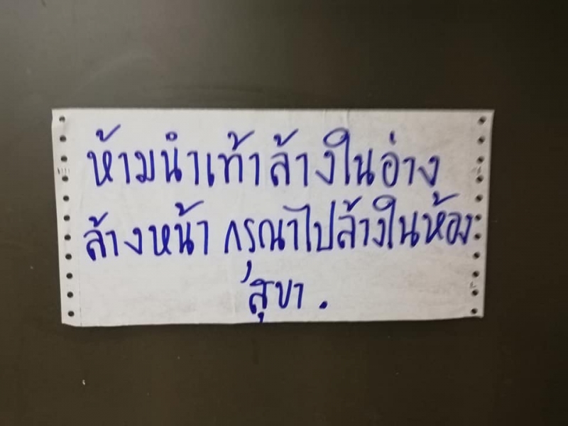 วันนี้เรามีเรื่องราวของผู้ที่ใช้บริการรถไฟโดยสารท่านหนึ่งที่ได้ออกมาโพสต์เรื่องราวด้วยความสงสัย เนื่องจากหลังจากการที่ได้ขึ้นรถไฟแล้ว พอเดินเข้าไฟที่ห้องหวังว่าจะล้างหน้ากลับเจอป้ายที่ติดบริเวณอ่างล้างหน้าถึงต้องสะดุ้งหยุดล้างหน้าเนื่องจากป้างที่เขียนข้อความห้ามไว้