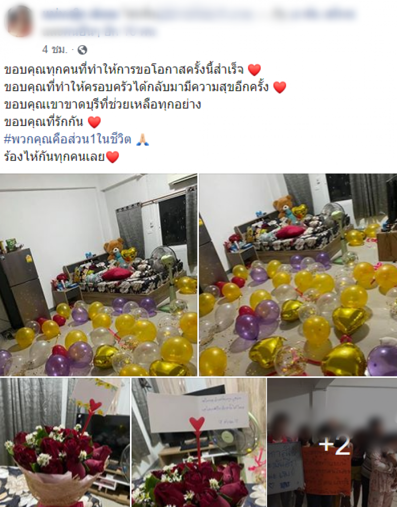 ขอบคุณทุกคนที่ทำให้การขอโอกาสครั้งนี้สำเร็จ ขอบคุณที่ทำให้ครอบครัวได้กลับมามีความสุขอีกครั้ง ขอบคุณเขาขาดบุรีที่ช่วยเหลือทุกอย่างขอบคุณที่รักกัน พวกคุณคือส่วน1ในชีวิต ปล่อยโฮกันทุกคนเลย