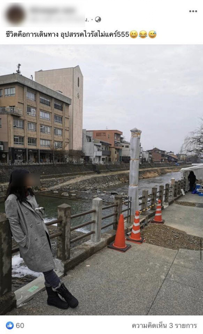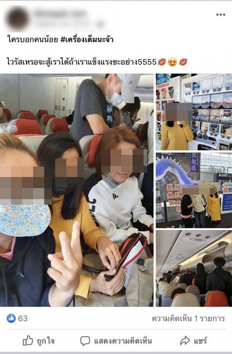 โดยเพจดังกล่าวได้โพสต์ภาพ พร้อมระบุข้อความว่า เห็นแก่ตัวแบบนี้นะ เห็นแก่ตั๋วราคาถูก ถ้าแม่จะเป็นอะไร ไม่ได้เป็นคนเดียวไง แม่ น่าจะมีบจัดการหนักๆ บางคนไปเที่ยวมา บริษัทเค้าให้หยุดเอางานไปทำที่บ้าน 14 วัน แต่เลือกเอา 14 วันนี้ไปเที่ยวต่ออีก