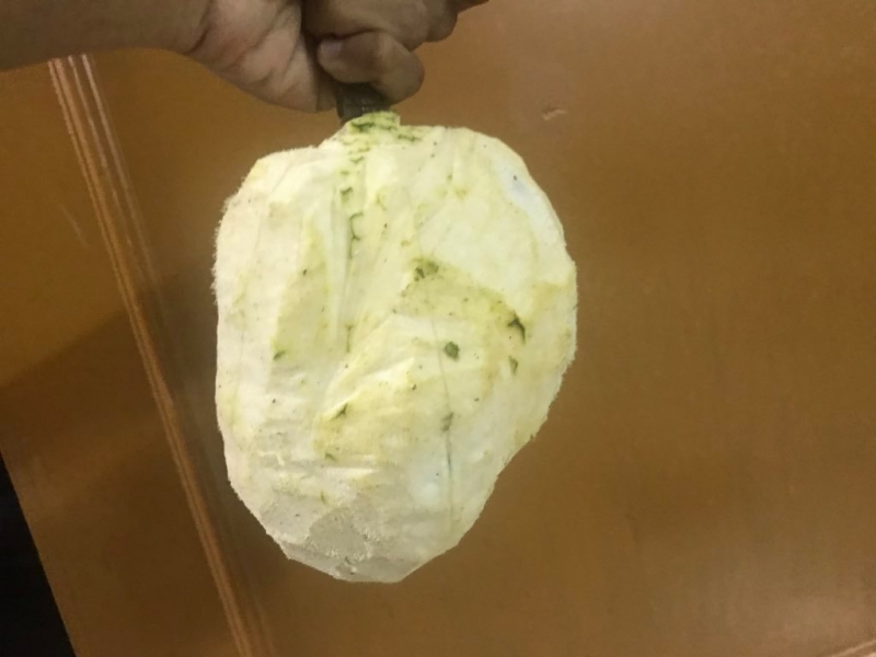 แต่อย่างไรก็ตาม เมื่อได้รับคำสั่งจากเบื้องบน(ภรรยา) หนุ่มผู้โพสต์ก็ไม่กล้าขัดใจ จึงได้ลงมือปลอกทุเรียนด้วยวิธีเอาหนามด้านนอกออกทั้งหมด จนอยู่ในภาพเกลี้ยงเกลาชนิดที่ไม่หลงเหลือความเป็นทุเรียนอีกต่อไป