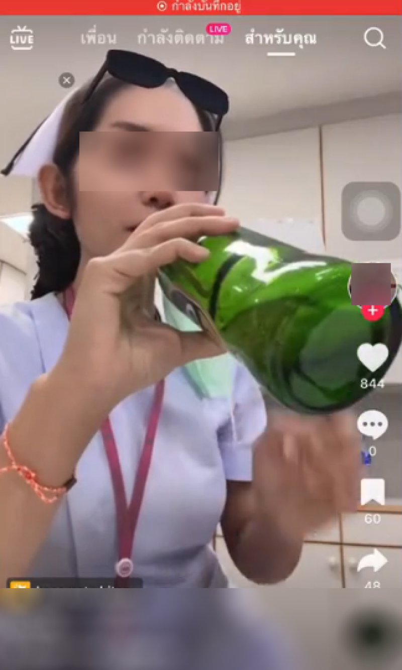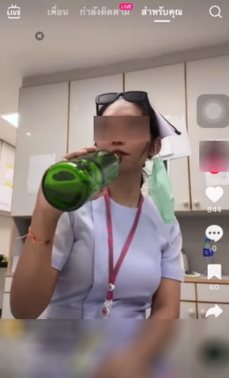 จากกรณีที่เป็นประเด็นดราม่าถูกวิพากษ์วิจารณ์อย่างมากในโลกออนไลน์ เมื่อผู้ใช้บัญชี TikTok รายหนึ่ง ได้มีการโพสต์คลิป สาวสวมชุดคล้ายเครื่องแบบพยาบาล ในมือถือเครื่องดื่ม พร้อมตั้งคำถามว่า ทำแบบนี้ได้หรือ ซึ่งก็มีชาวโซเชียลเข้ามาแสดงความคิดเห็นวิพากษ์วิจารณ์อย่างมาก หลายคนมองว่าไม่เหมาะสมเพราะอยู่ในสถานที่ทำงาน แถมยังใส่ชุดเครื่องแบบอีกด้วย ในขณะที่บางคนมองว่าเป็นการสร้างคอนเทนต์หรือไม่ แต่ก็ยังดูไม่ค่อยเหมาะสมอยู่ดี