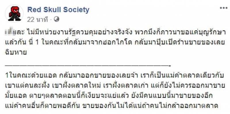 ขณะเดียวกันเพจเฟซบุ๊กโพสต์ข้อความระบุว่า ไม่มีหน่วยงานรัฐควบคุมอย่างจริงจัง พวกคุณก็ภาวนาขอแค่บุญรักษาแล้วกัน นี่ 1 ในคณะที่กลับมาจากฮอกไกโด กลับมาปุ๊บเปิดร้านขายของเลย