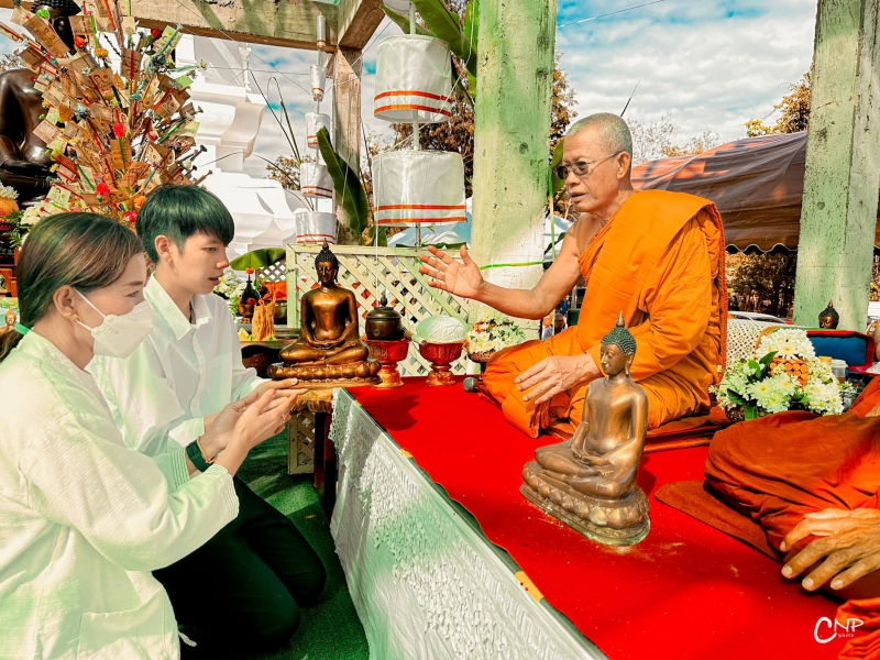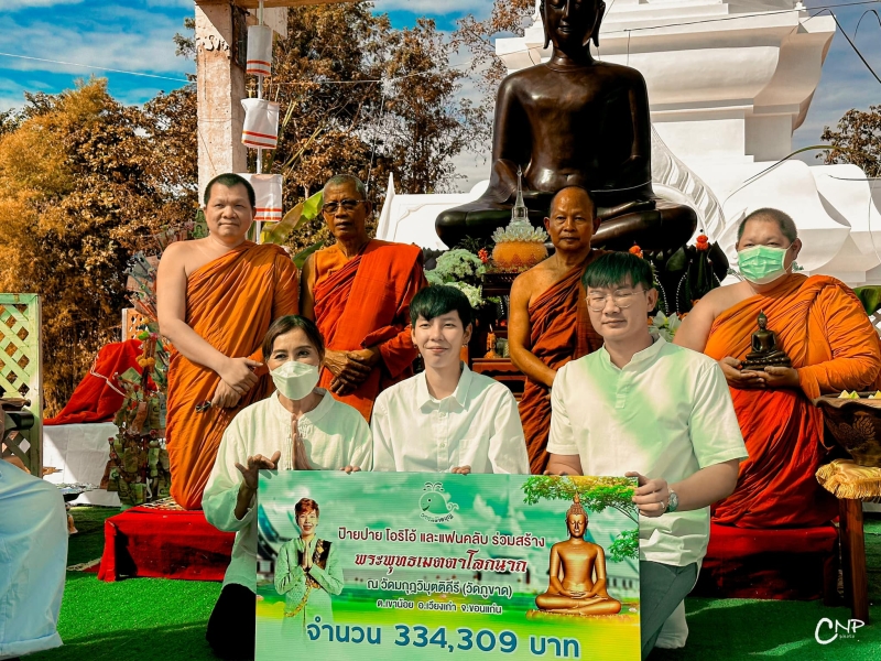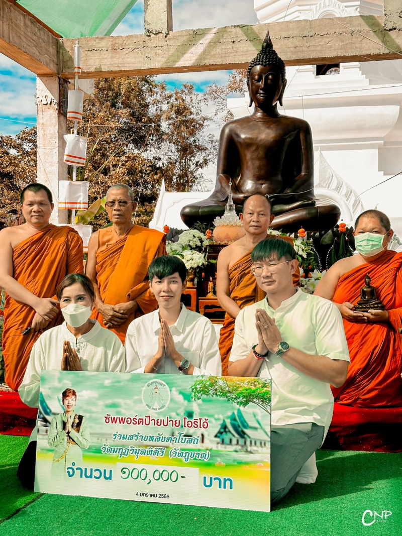 โดยป๊ายปายระบุว่า "เนื่องในวันขึ้นปีใหม่ ปี ๒๕๖๖ ป๊ายปายโอริโอ้ และแฟนคลับ ร่วมสร้างหลังคาโบสถ์ ร่วมสร้างพระพุทธเมตตาโลกนาถประดิษฐานเป็นองค์ประธาน ณ พระอุโบสถวัดมกุฎวิมุตติคีรี (วัดภูขาด)ต.เขาน้อย อ.เวียงเก่า จ.ขอนแก่น สาธุ สร้างพระเนื้อสำริด ขอให้สัมฤทธิ์สำเร็จสมเจตนาประสงค์ จงทุกประการ เ ท อ ญสาธุ สาธุ สาธุ"
