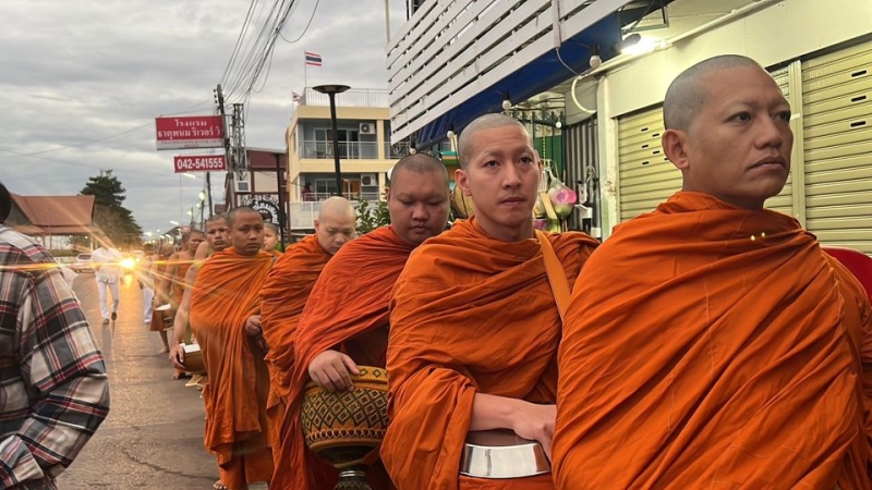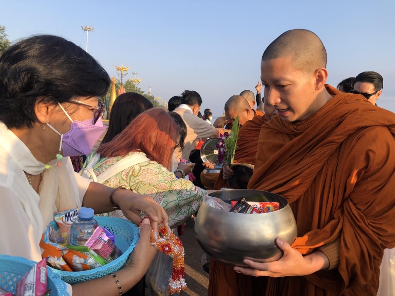 โดยเมื่อเช้า วานนี้ ได้ร่วมบิณฑบาตที่หน้าวัดมหาธาตุ ตลอดถนนสุนทรวิจิตร ยาวไปถึง ลานพญาศรีสัตตนาคราช แลนด์มาร์กพญานาคศักดิ์สิทธิ์เลียบฝั่งแม่น้ำโขง ระยะทางยาวกว่า 500 เมตร โดยมีพุทธศาสนิกชน ประชาชน นักท่องเที่ยว ทั้งชาวไทยชาวลาว รวมถึงชาวไทยเชื้อสายเวียดนาม ออกมาร่วมทำบุญตักบาตรอย่างเนืองแน่น