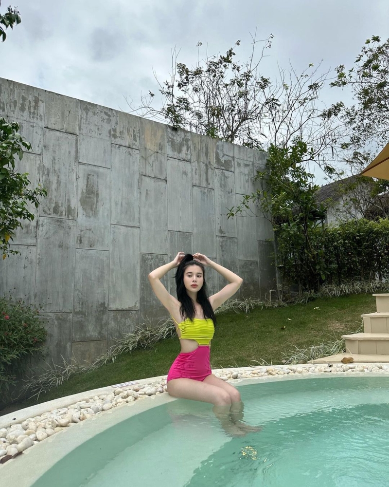 เก้า สุภัสสรา จัดชุดว่ายน้ำสีสันสดใส มุมนี้น่ารักมาก
