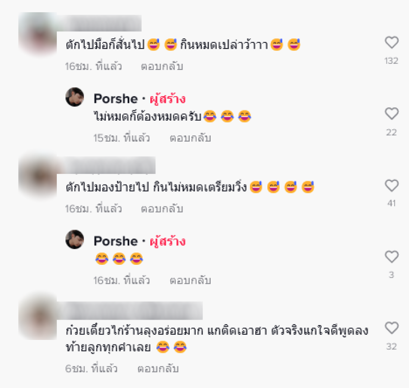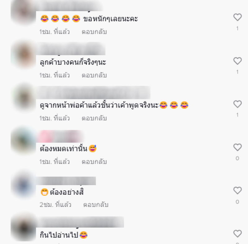 โดยหลังจากที่โพสต์ออกไป ก็มีชาวโซเชียลเข้ามาแสดงความคิดเห็นกันเพียบ อาทิเช่น ตักไปมองป้ายไป กินไม่หมดเตรียมวิ่ง,ก๋วยเตี๋ยวไก่ร้านลุงอร่อยมาก แกติดเอาฮา ตัวจริงแกใจดีพูดลงท้ายลูกทุกคำเลย,ดูจากหน้าพ่อค้าแล้วชั้นว่าเค้าพูดจริงนะ