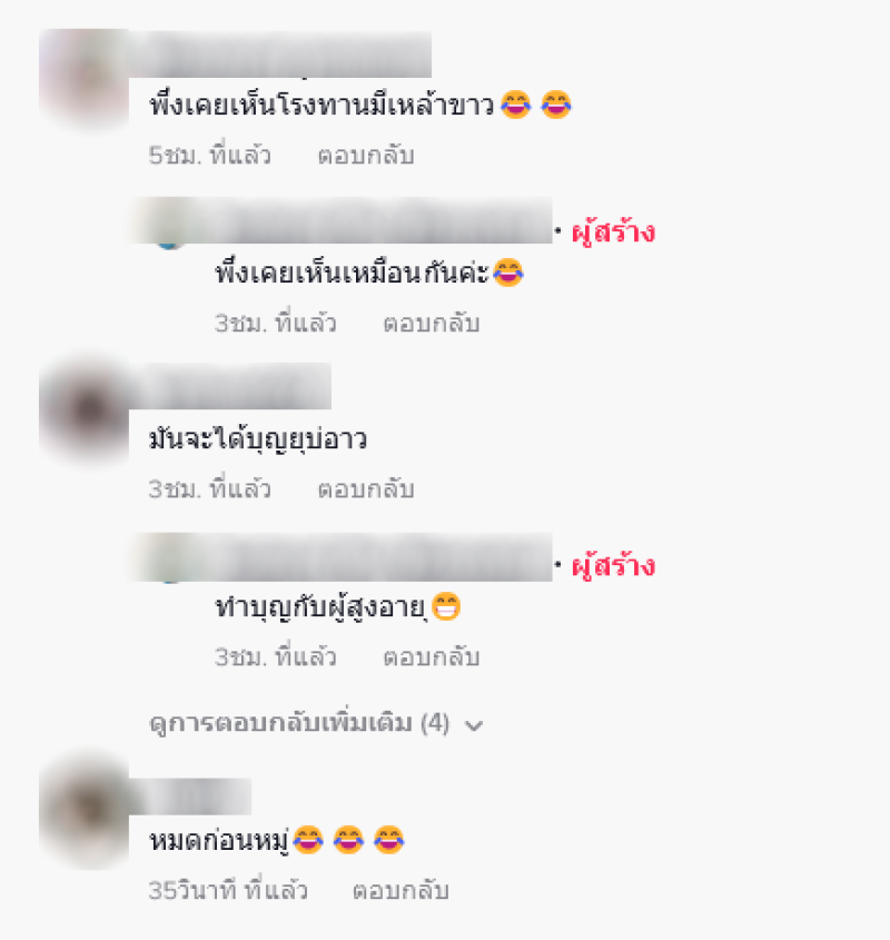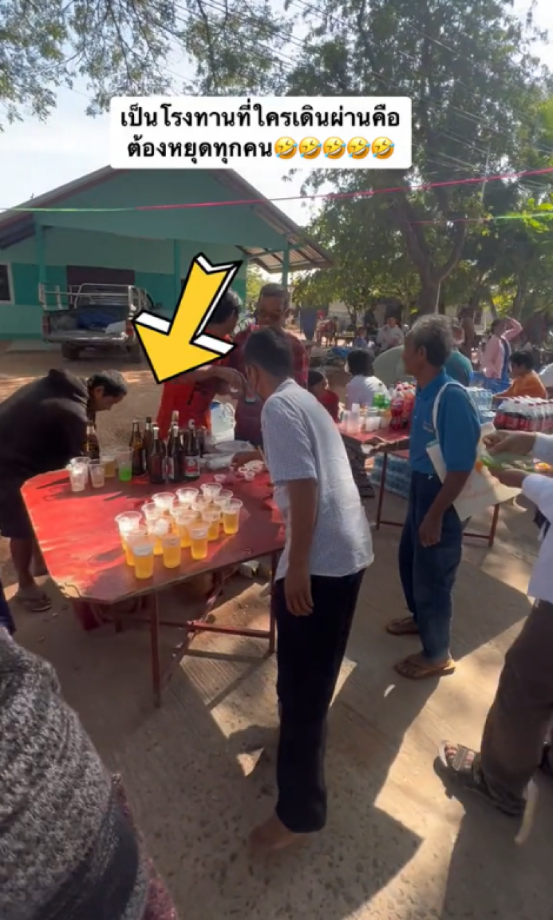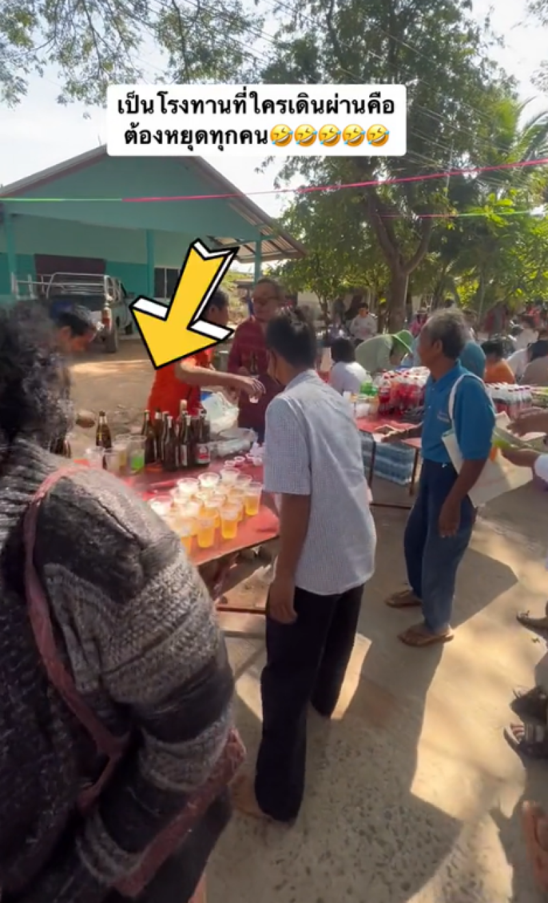 เรียกได้ว่าเป็นอีกหนึ่งเรื่องราวที่สร้างความฮือฮา และได้รับความสนใจอย่างมากในโลกออนไลน์ หลังจากที่ผู้ใช้บัญช tiktok รายหนึ่ง ได้มีการโพสต์คลิปบรรยากาศภาพงานบุญโรงทาน ซึ่งมีผู้ใจบุญนำอาหารมาทำโรงทานแจกผู้คน แต่มีอยู่โต๊ะหนึ่งที่ชาวบ้านฮือฮาเป็นพิเศษ โดยเฉพาะกลุ่มคนชรา ซึ่งโต๊ะโรงทานดังกล่าวนั้นเป็นการแจกเครื่องดื่ม แอลกอฮอล์ มีชาวบ้านเดินมาหยิบไปดิ่มอยู่เรื่อยๆ โดยผู้โพสต์ระบุแคปชั่นว่า "เป็นโรงทานที่ใครเดินผ่าน คือต้องหยุดเกือบทุกคน #สุรินทร์หวานมาก"