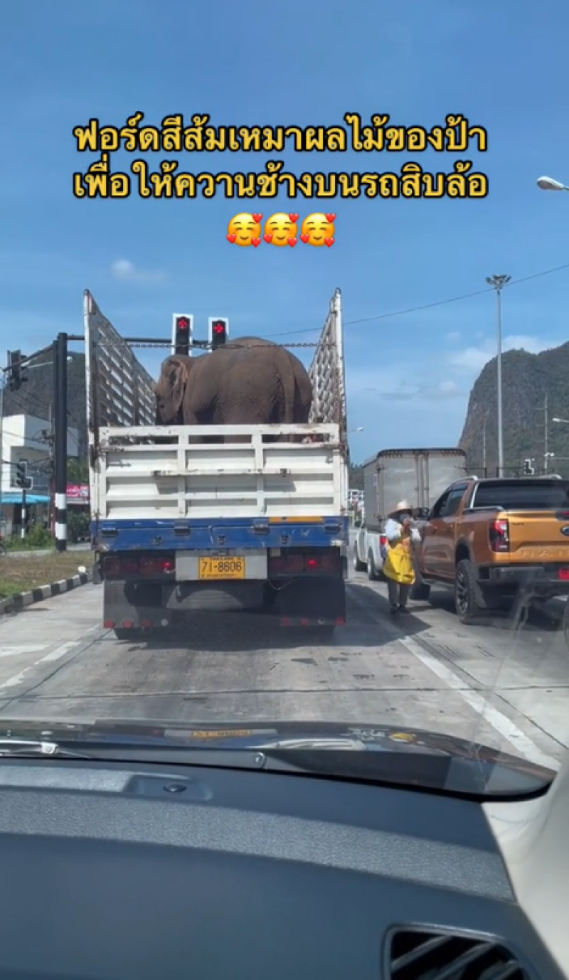 เรียกได้ว่าเป็นอีกหนึ่งเรื่องราว ที่ได้รับเสียงชื่นชมเป็นอย่างมากในโลกออนไลน์ เมื่อผู้ใช้บัญชี tiktok ชื่อ sutada095 ได้มีการโพสต์คลิป เป็นเรื่องราวดีๆบนท้องถนน ระหว่างติดไฟแดง ได้มีรถบรรทุกช้างจอดอยู่ข้างหน้า ก่อนที่คนขับรถกระบะฟอร์ดคันสีส้ม จะเหมาผลไม้จากแม่ค้าที่อยู่ตรงนั้น ให้กับช้างตัวดังกล่าวกิน กลายเป็นภาพแห่งความประทับระหว่างเดินทาง