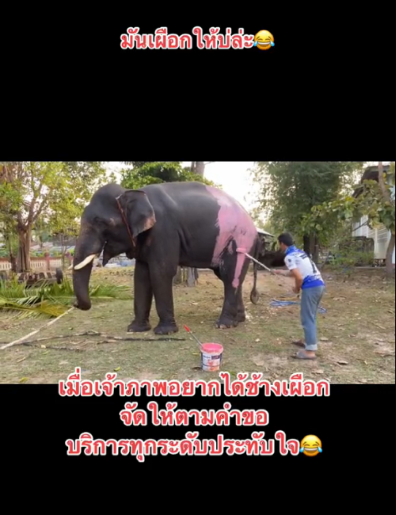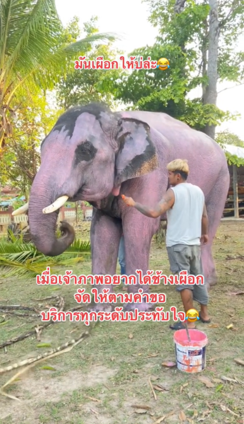 เรียกได้ว่ากลายเป็นคลิปไวรัลที่ทำเอาฮาลั่นกันทั้งโซเชียล เมื่อผู้ใช้บัญชี tiktok ชื่อ plaitongkoon ได้มีการโพสต์ควาญช้าง กำลังทาสีชมพูให้กับช้าง เนื่องจากว่าทางเจ้าภาพที่จ้างนั้น ต้องการช้างเผือกนั่นเอง ทางควาญช้างจึงไดนำสีมาแปลงโฉมให้กับน้องช้าง โดยผู้โพสต์ระบุว่า "เมื่อเจ้าภาพอยากได้ช้างเผือก จัดให้ตามคำขอ บริการทุกระดับประทับใจ ดินสอพอง+สีผสมอาหารสีชมพู=สีเผือก พอกสีผิวเผือกให้พ่อพลายสุดหล่อ #พลายทองคูณfc"