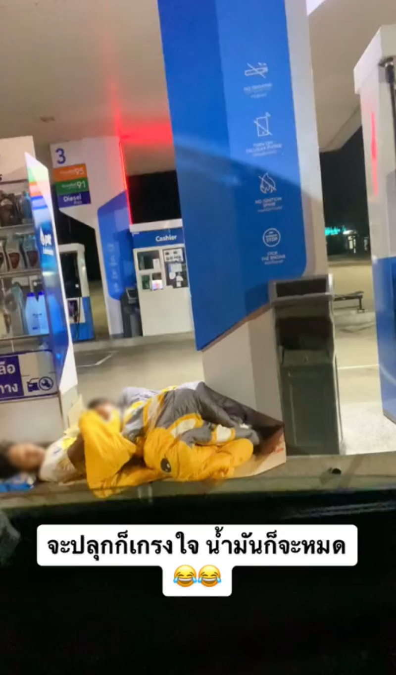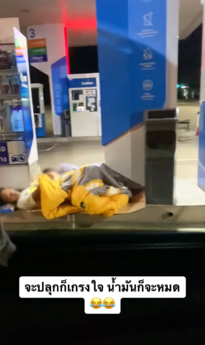 หนุ่มขับรถเข้าปั๊ม เจอพนักงานนอนหลับ น้ำมันก็จะหมด จะปลุกก็เกรงใจ