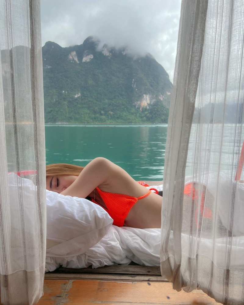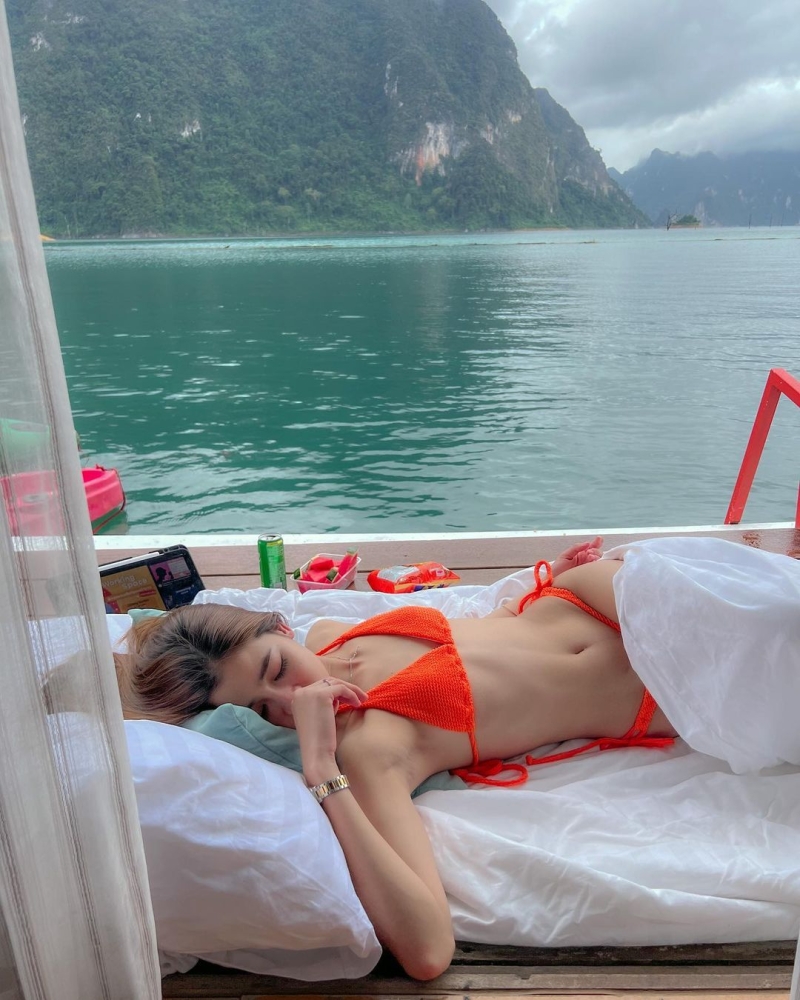 แบม ไพลิน นอนชิลๆอวดวิวสุดสวย โฟกัสชุดที่ใส่ แซ่บจี๊ดจริงๆ