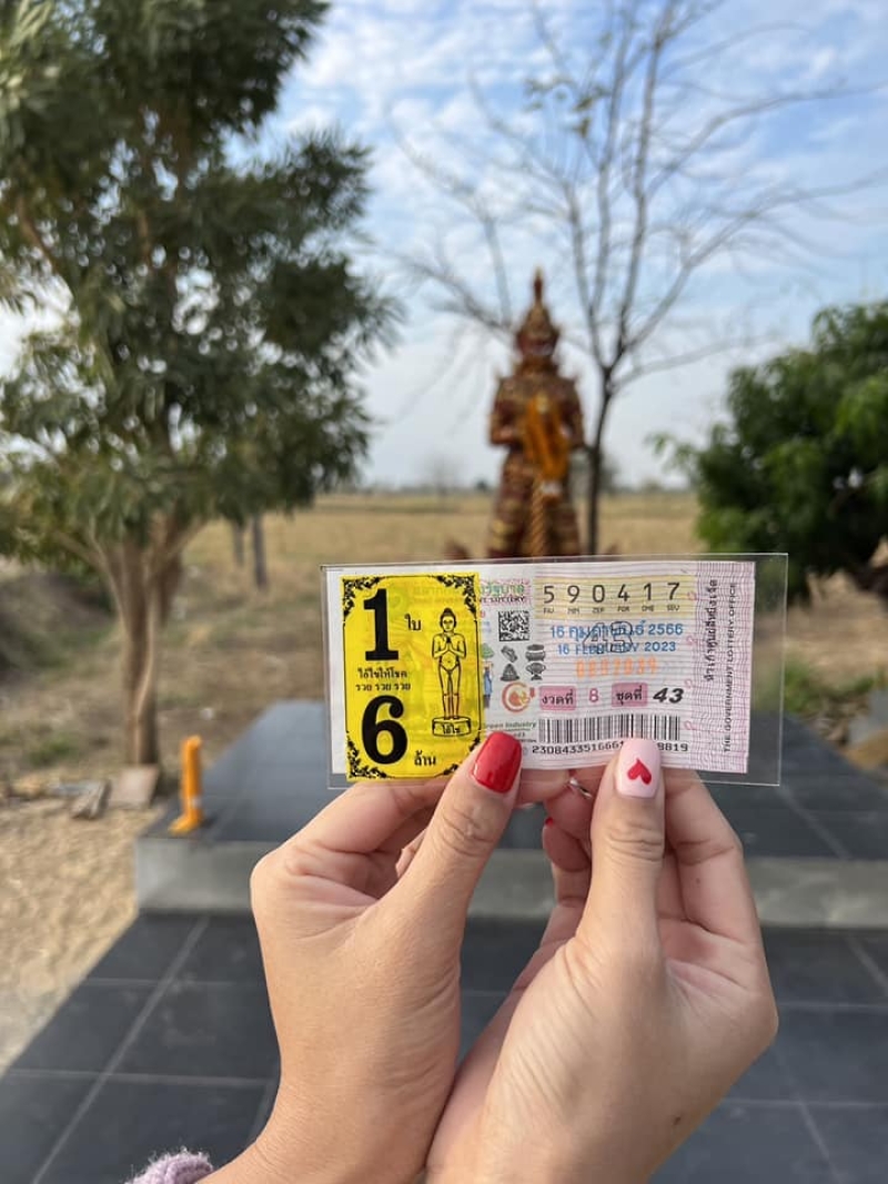 ล่าสุดในโลกออนไลน์ ได้มีการแชร์โพสต์จากผู้ใช้เฟซบุ๊กรายหนึ่ง โดยได้โพสต์ภาพแสดงความยินดีกับสาวรายหนึ่ง ที่เป็นผู้ถูกรางวัลที่ 1 จำนวน 1 ใบ หลังจากที่ได้มากราบไหว้ท้าวเวสสุวรรณ โดยระบุว่า "ยินดีกับน้องด้วยถูกรางวันที่ 1 ครับ รอบแรกมาไหว้กับความทุกข์ใจ รอบสองกับมาไหว้กับความสุขใจ" ท่ามกลางชาวโซเชียลที่มาร่วมแสดงความยินดี