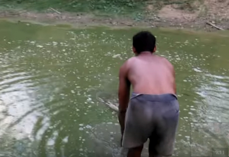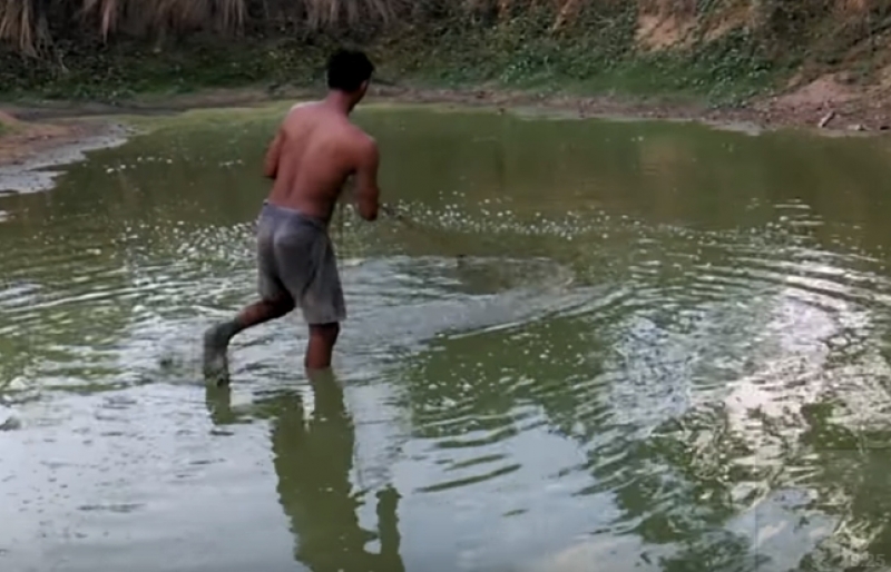 ต้องบอกว่าหากเห็นบึงน้ำแบบในคลิปที่เกิดขึ้นนั้นก็ต้องบอกว่าแทบไม่เชื่อว่าในนั้นจะมีอะไร เพราะสภาพน้ำนั้นเขียวปั๊ด แต่กับหนุ่มรายหนึ่งซึ่งรักในลูกทุ่งถอดเสื้อดันเดินไปเจอกับบึงน้ำนิ่งๆ เลยคิดคิดเล่นๆก็วิ่งผ่านแว๊บเข้ามาในหัวของเขา เอ๊ะ มันจะมีอะไรอยู่ในนี่หรือเปล่าน่ะ ดังนั้นเขาจึงเอาแหลองมาหว่านดู
