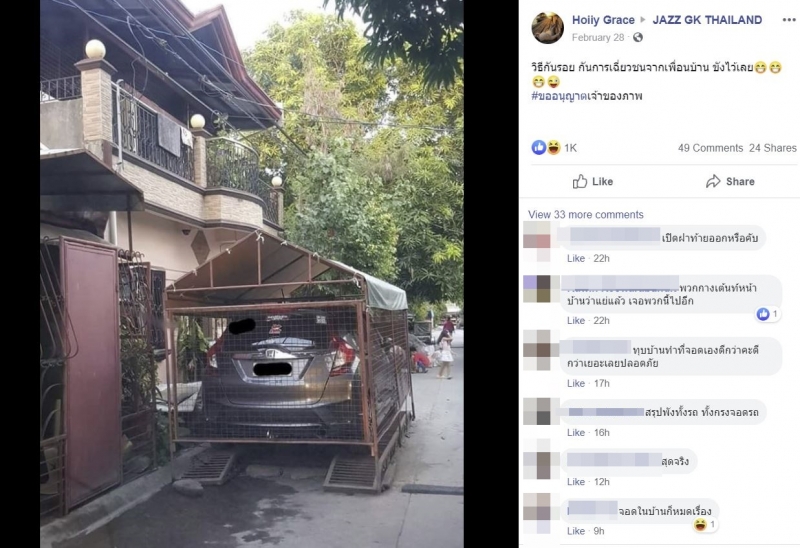 ซึ่งทาง Hoiiy Graceได้เผยภาพ รถคันหนึ่ง วิธีกันรอย จากเพื่อนบ้าน ล๊อคไว้เลย พวกกางเต้นท์หน้าบ้านว่าแย่แล้ว เจอพวกนี้ไปอีก ไม่ยอมไปจอดในบ้านง่ายๆ ถ้าอยู่ในพื้นที่ตัวเองจะน่าดูและถือว่าไอเดียดี เเต่นี่เอาไว้นอกบ้าน เกะกะทางคนอื่นเเถมยังสร้างเป็นกรงขนาดใหญ่ เห็นใจเพื่อนบ้างข้างๆต้องมาเจออะไรเเบบนี้ เหมือนกับการซื้อบ้านหลังหนึ่งเเถมที่หน้าบ้านมาให้ด้วย