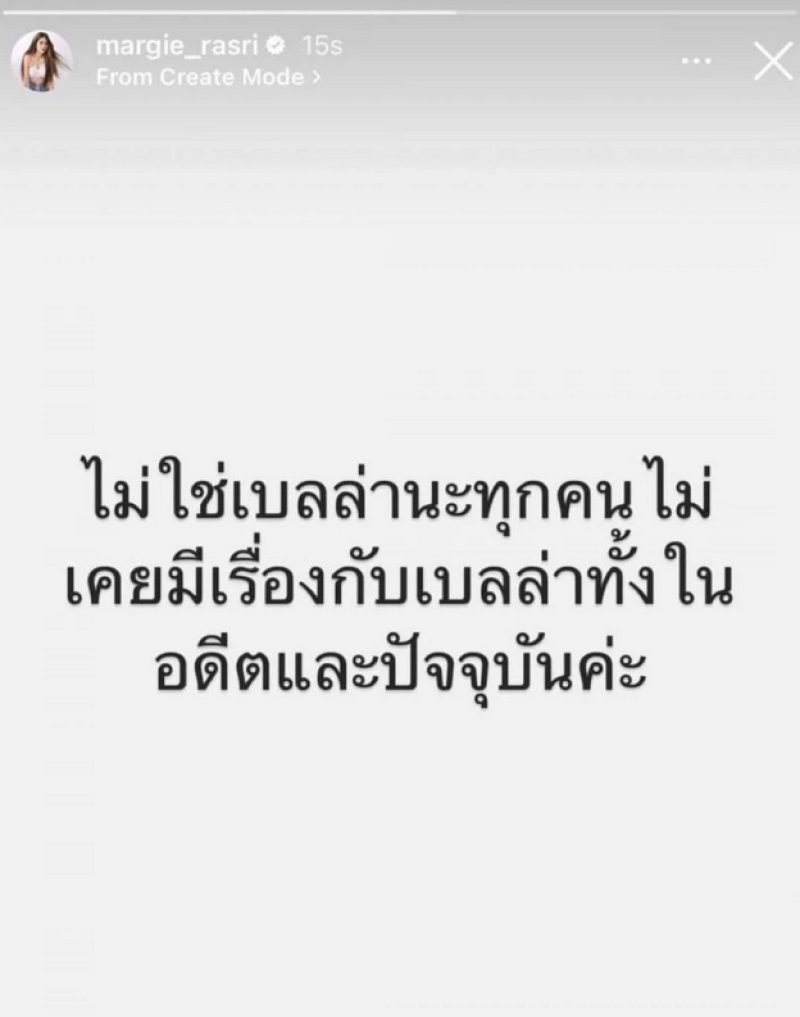 จากประเด็นดังกล่าว ทำเอาหลายคนในโลกโซเชียลต่างไปโยงว่า ใช่ นางเอกสาว "เบลล่า" หรือไม่ พร้อมขุดภาพแฟชั่นโชว์ในอดีต เมื่อปี2015 ร้อน โดยล่าสุดทาง"มาร์กี้" โพสต์ข้อความชี้แจง ในอินสตาแกรมส่วนตัวว่า "ไม่ใช่เบลล่านะทุกคน ไม่เคยมีเรื่องกับเบลล่าทั้งในอดีตและปัจจุบันค่ะ"
