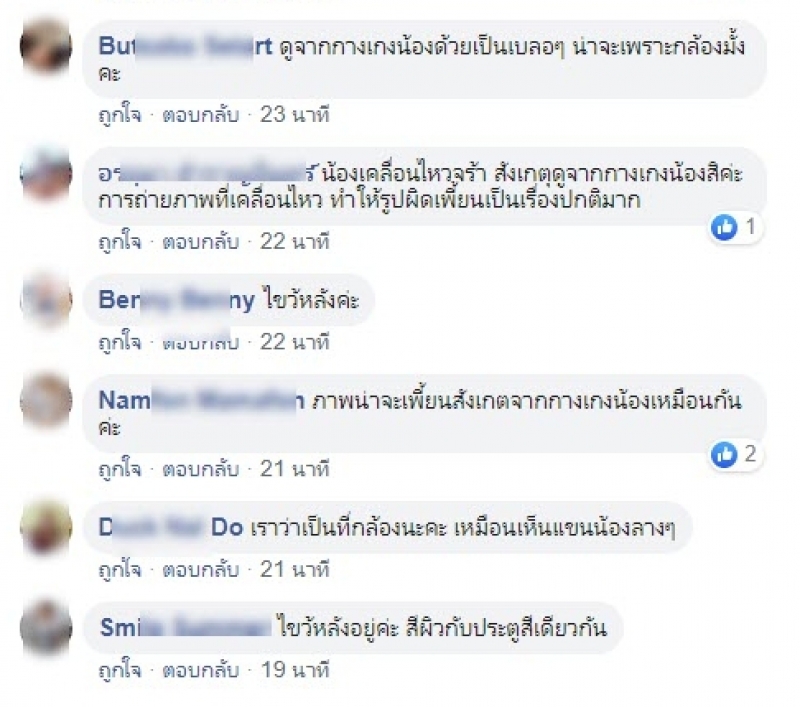 ซึ่งหลังจากที่เธอได้เผยภาพออกไป ชาวโซเชียลต่างเข้ามาแสดงความคิดเห็นจำนวนมาก ส่วนใหญ่มองว่าเป็นมุมกล้อง ซึ่งบุตรของเธอยืนเอามือไพล่หลัง จึงมองไม่เห็นแขนนั่นเอง