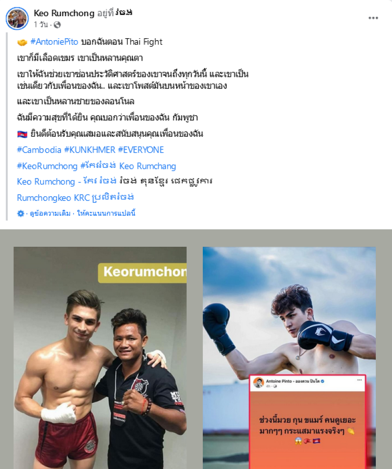จากกรณีประเด็นดราม่า เมื่อ อองตวน อดีตนักชกมวยไทย ที่คุณแม่เป็นลูกครึ่งฝรั่งเศส-กัมพูชา ได้โพสต์ข้อความว่า "ช่วงนี้มวย กุน ขแมร์ คนดูเยอะมากๆๆ กระแสมาแรงจริงๆ" ต่อมามีสื่อกัมพูชาหลายสำนัก นำข้อความของ อองตวน ปินโต มาเผยแพร่ โดยระบุว่าเป็นนักมวยชาวฝรั่งเศสที่มาชกมวยไทย และให้ความยกย่องนับถือมวย กุน ขแมร์ ของเขมร จากประเด็นดังกล่าว ก็ทำให้ทัวร์แฟนมวยชาวไทย แห่เข้าไปคอมเมนต์กันเป็นจำนวนมาก ก่อนที่โพสต์ดังกล่าวจะถูกลบไปเรียบร้อยแล้ว
