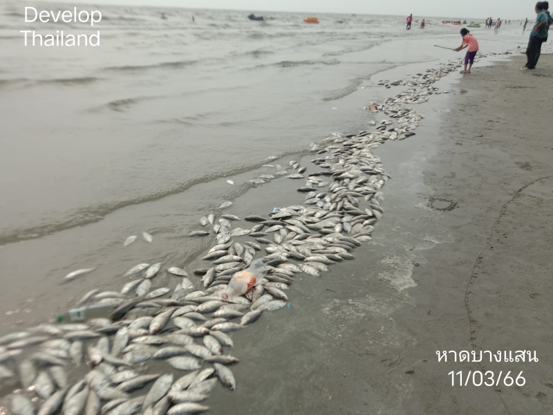 กลายเป็นอีกหนึ่งเรื่องราวที่สร้างความฮือฮาให้แก่นักท่องเที่ยวเป็นอย่างมาก วันที่ 11 มีนาคม 2566 ที่บริเวณตามแนวชายหาดบางแสน จังหวัดชลบุรี เติมไปด้วยปลาจำนวนมากขึ้นมาเกยหาด โดยไม่ทราบสาเหตุว่าเกิดจากอะไรขึ้น ซึ่งทางเฟซบุ๊กเพจ Develop Thailand ประเทศไทย ไปโลด ก็ได้มีการโพสต์ภาพเอาไว้