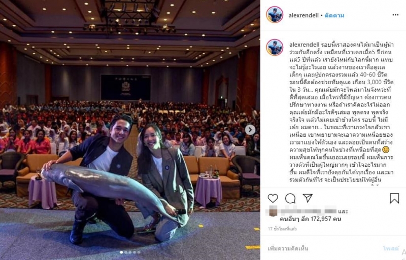 ทั้งคู่ยังคงทำโครงการดีๆช่วยเหลือสังคมร่วมกัน อย่างก่อนหน้านี้ทั้งอเล็กซ์และเต้ย ก็ได้ร่วมกันจัดกิจกรรม กอดป่ากอดทะเลครั้งที่ 1 ที่จังหวัด กระบี่ โดยหนุ่มอเล็กซ์ ก็ได้ออกมาโพสต์ภาพ
