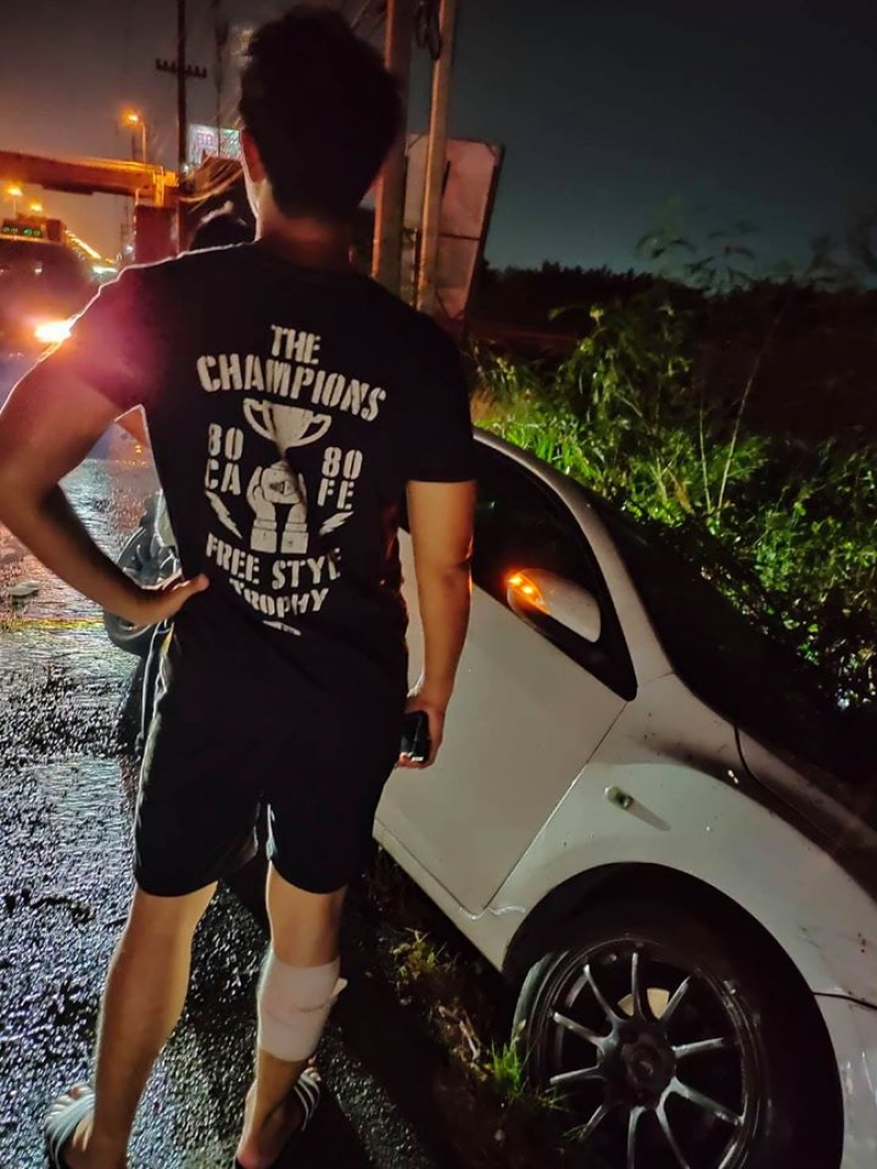 ดาราหนุ่มหน้าตาดี ลงมาช่วงรถตกข้างทางโดยบังเอิญ
