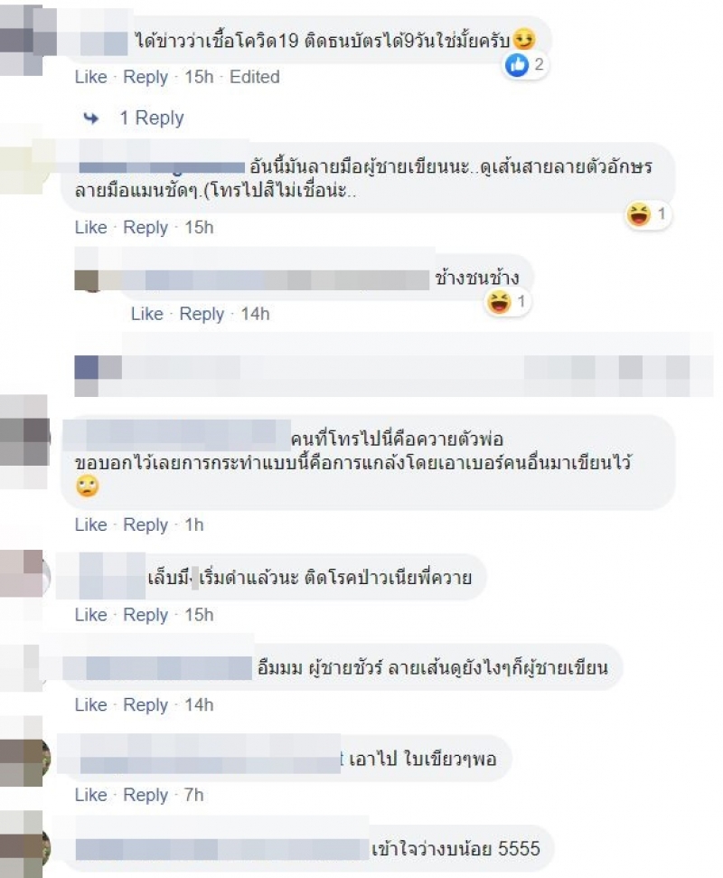 ซึ่งก็ได้มีคอมเม้นต์ความคิดเห็นของชาวโซเชียลตามมาอย่างมากมาย บ้างก็บอกว่า ลองดูดีๆ อันนี้มันลายมือผู้ชายเขียนนะ ดูเส้นสายลายตัวอักษร ลายมือแมนชัดๆ(โทรไปสิถ้าไม่เชื่อ)