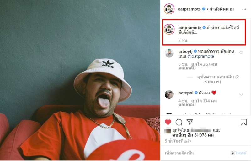 หลังจากที่ สาวเเพท ได้เปิดตัวเเฟนหนุ่มไปอย่างเป็นทางการ ทางด้าน โอ๊ต ปราโมทย์ ก็ถูกวิพากษ์วิจารณ์อย่างหนักในโลกโซเชียล ว่าอาจเป็นเพราะทิ้งอดีตเเฟนเก่ามาหรือไม่ จึงเจอเหตุการณ์เเบบนี้ เเละล่าสุด โอ๊ต ปราโมทย์ นั้นก็สุดจะทน โพสต์ตัดพ้อกลางไอจี ว่า ถ้าด่าเราแล้วชีวิตดีขึ้นก็ยินดี