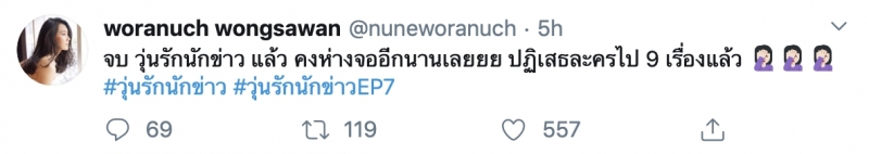 ล่าสุดทำเอาแฟนคลับแห่เข้ามาแสดงความยินดีกันยกใหญ่หลัง นุ่น วรนุช ได้ออหมาทวีตเอาไว้ว่า จบ วุ่นรักนักข่าว แล้ว คงห่างจออีกนานเลยยย ปฏิเสธละครไป 9 เรื่องแล้ว ซึ่งงานนี้ก็ไม่รู้ว่าจะมีข่าวดีอะไรหรือเปล่า นุ่น วรนุช ถึงได้ออกมาปฏิเสธรับงานละครรัวๆขนาดนี้