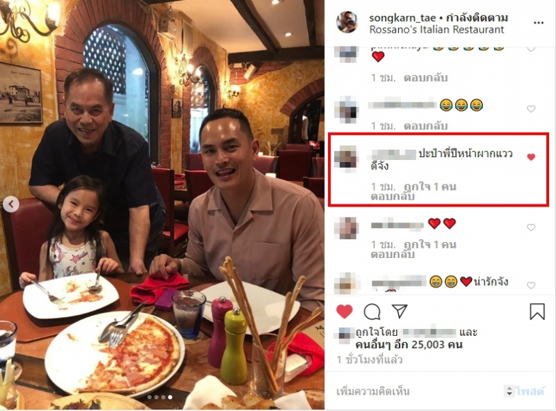 เเต่ล่าสุด ทางด้านอดีตสามีอย่าง สงกรานต์ นั้นก็เป็นประเด็นมาติดๆกัน เมื่อเขานั้นได้โพสต์รูปภาพขณะมากินข้าวกับลูกสาว น้องปีใหม่ โดยมี คุณปู่ไพวงษ์ ไปด้วย เเต่งานนี้ชาวโซเชียลตาดี ดันโฟกัสไปที่หน้าผากแทนเช่นกัน โดยชาวโซเชียลรายหนึ่งได้เเสดงความคิดเห็นว่า ปะป๋าพี่ปีหน้าผากแววดีจัง อีกด้วยจ้า