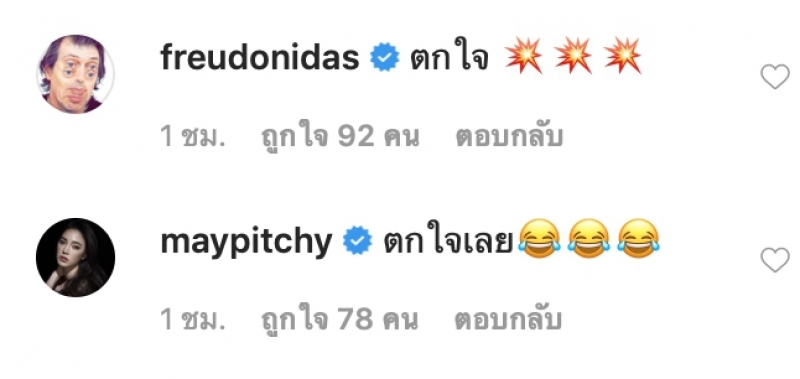 รวมไปถึงดาราสาว เมย์ พิชญ์นาฏ สาขากร และ ฟรอยด์ ณัฏฐพงษ์ ชาติพงศ์ ที่เข้ามาคอมเม้นต์ตกใจ เมื่อเห็นภาพ สาวมิ้นต์ กำลังอุ้มเบบี้ เพราะคิดว่าเธอมีลูกแล้วจริงๆนั่นเอง