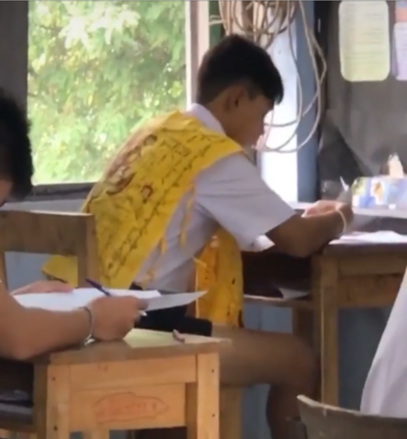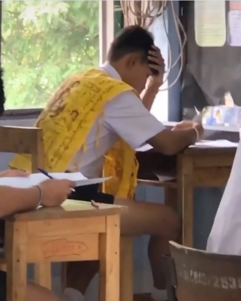 จากกรณีนักเรียนในระดับชั้นมัธยมศึกษาตอนปลายรายหนึ่ง ขณะกำลังเข้าห้องสอบ ได้สวมชุดแต่งกายที่แปลกไปจากเพื่อนคนอื่นๆ ในชั้น โดยได้สวมเสื้อที่มีลักษณะคล้ายผ้ายันต์เสริมดวงให้การสอบครั้งนี้ผ่านไปได้ด้วยดี