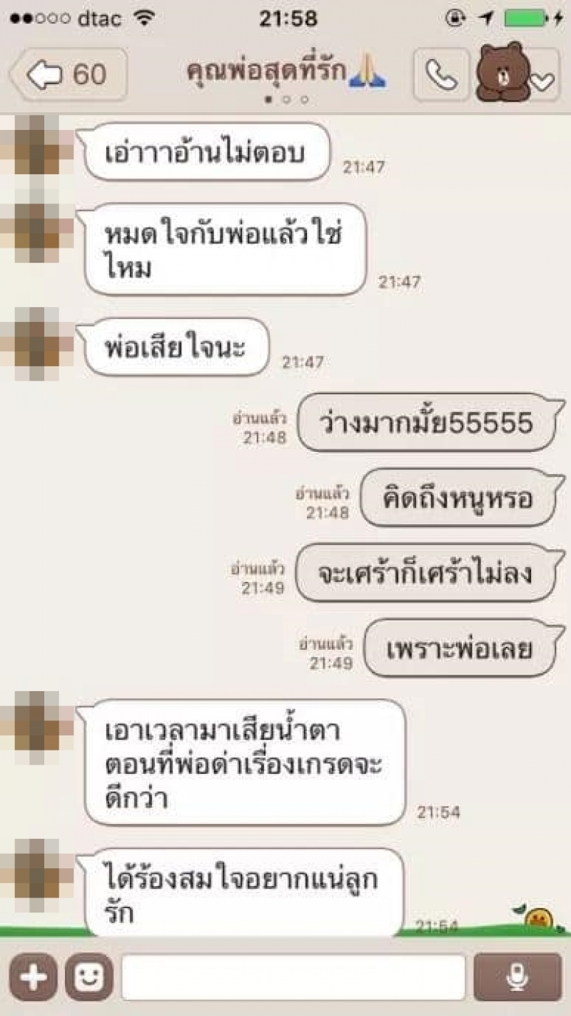 พ่อแชทไลน์ปลอบใจบุตรสาว