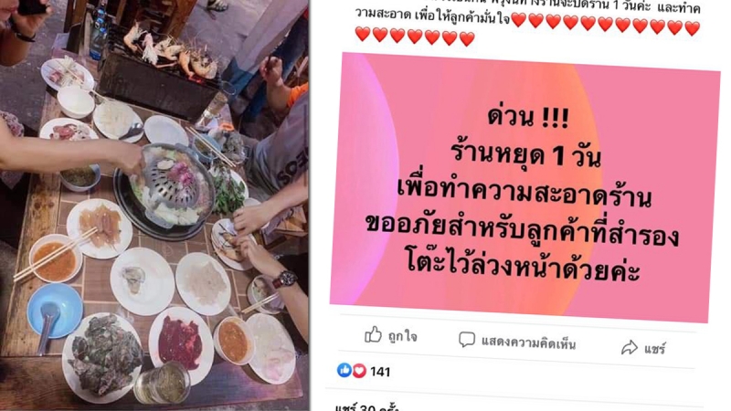 ทำให้ต่อมาทางร้านต้องออกมาประกาศหยุดร้าน 1 วัน เพื่อทำความสะอาด