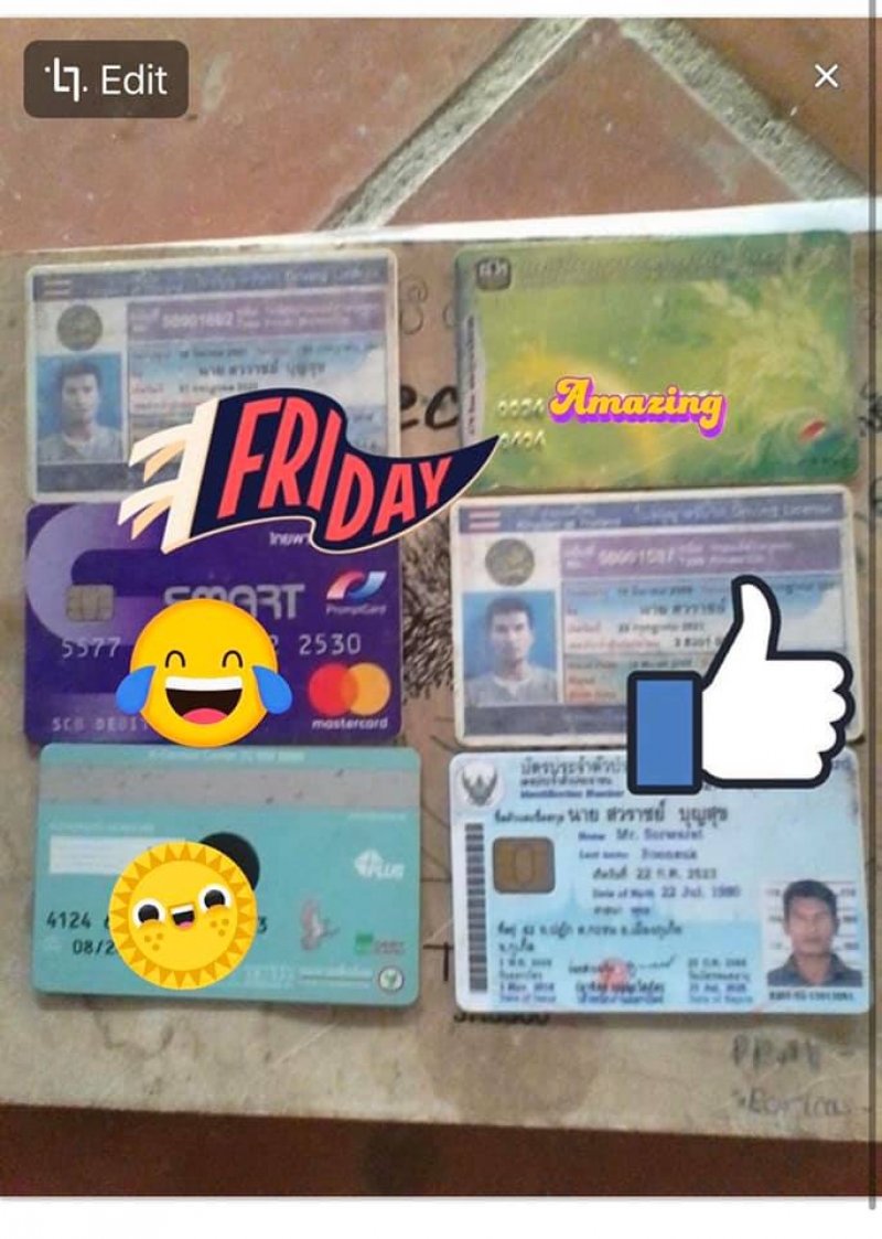 คุณ Muanprae Ratniyom โพสต์รูปภาพเงินปึกหนึ่งพร้อมบัตรประชาชนและบัตรต่างๆของชายรายหนึ่งหลังพบตกอยู่จึงนำมาตามหาเจ้าของ