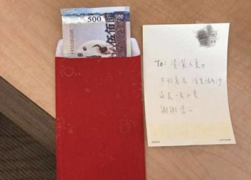 โดยแม่บ้ายเผยว่า ขณะที่เธอเข้าไปทำความสะอาดห้องพักหลังจากลูกค้าคืนห้องพัก ก่อนเห็นซองสีแดงวางอยู่บนโต๊ะพร้อมกระดาษโน้ตที่มีข้อความระบุว่า To พนักงานทำความสะอาด ขอโทษจริงๆ นะคะ ที่ทำให้ห้องน้ำเลอะ เต็มไปด้วยทราย นี่เป็นค่าเสียหายเล็กๆน้อยๆ จากพวกเรา ขอบคุณค่ะ พร้อมกับมีเงินจำนวน 500 ดอลลาร์ไต้หวัน หรือหระมาณ 570 บาท ใส่เอาไว้ด้วย