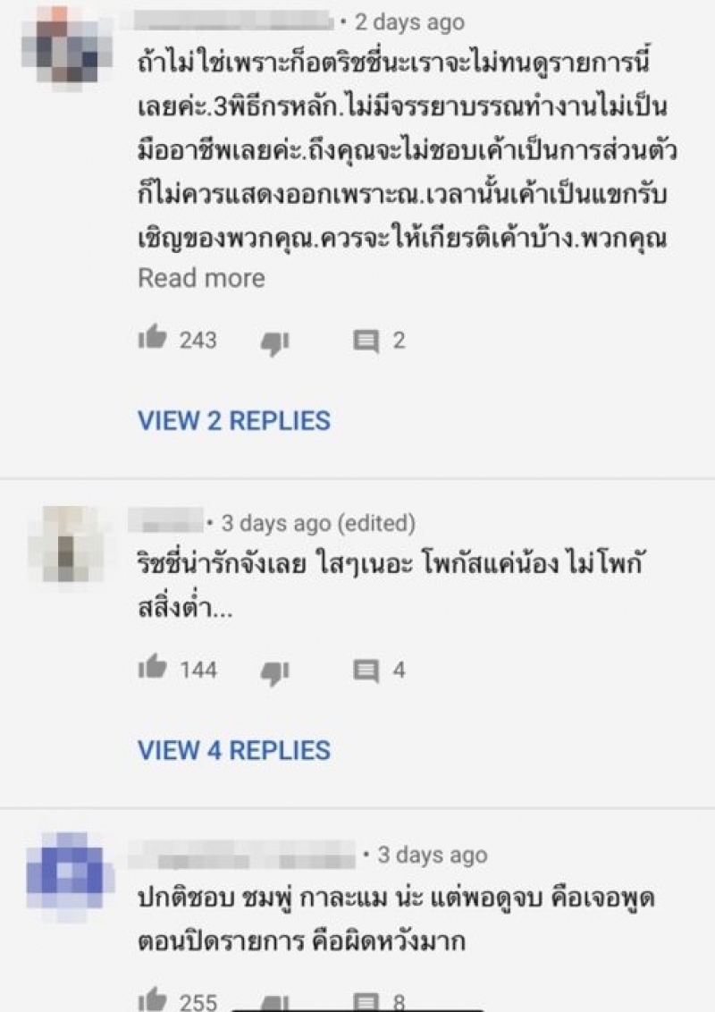 และให้เกียรติอาชีพตัวเอง หลังกล้องจะไม่พอใจอะไรกันก็ช่าง จะคิดว่าน้องเค้าแอ๊ปหรืออะไรมันก็เป็นสิทธิของเค้า พวกคุณไปว่าเค้าก่อน เท่ากับยกบุญให้เค้าไปแล้ว พอกระแสตีกลับดันไม่จบไม่สิ้นอีก ใดๆก็คืออยู่ในวงการนานซะเปล่า เป็นต้น