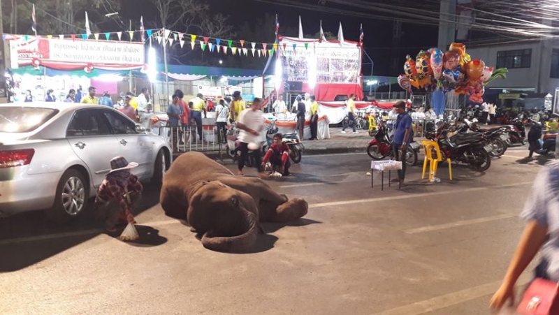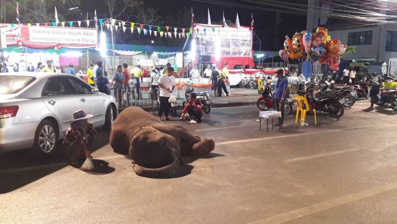 ภาพช้างนอนหมดแรงอยู่ริมถนน หลังถูกบังคับให้ออกมาเดินหากิน