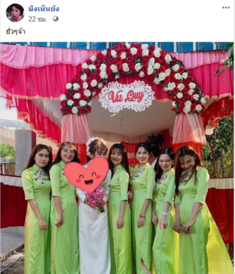 เจ้าสาวถ่ายรูป คู่กับเพื่อนๆในงานแต่ง