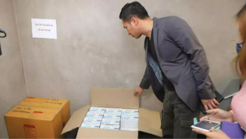 จากการตรวจสอบห้องเก็บของบริเวณชั้นล่าง พบหน้ากากอนามัยบรรจุอยู่ในลังกระดาษใหญ่ จำนวน 2 ลัง แบ่งเป็นกล่องเล็ก จำนวน 250 กล่อง กล่องละ 50 ชิ้น รวมเป็น 12500 ชิ้น บริเวณหน้าลัง มีข้อความระบุว่า k อลิส ฝากบริจาค ปอง 5มีนาคม เบื้องต้น เจ้าหน้าที่ไม่ได้ทำการตรวจยึดแต่อย่างใด ก่อนจะยกเลิกภารกิจถอนนำกำลังกลับ