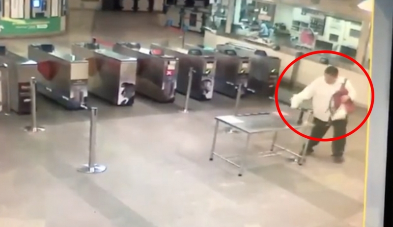 หนุ่ม เดินบนบีทีเอส รีบยัดของใส่กระเป๋า