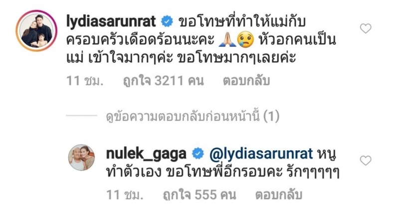 ล่าสุด สาวหนูเล็ก นั้นก็สุดละอายใจ โผล่ขอโทษ ลิเดีย กลางไอจี หลังปล่อยโฮเพราะกลัวติดcovid โดยงานนี้ สาวหนูเล็ก ก็ได้รีบตอบกลับ สาวลิเดีย ว่า หนูทำตัวเอง ขอโทษพี่อีกรอบค่ะ รักๆๆๆๆๆ นั่นเอง
