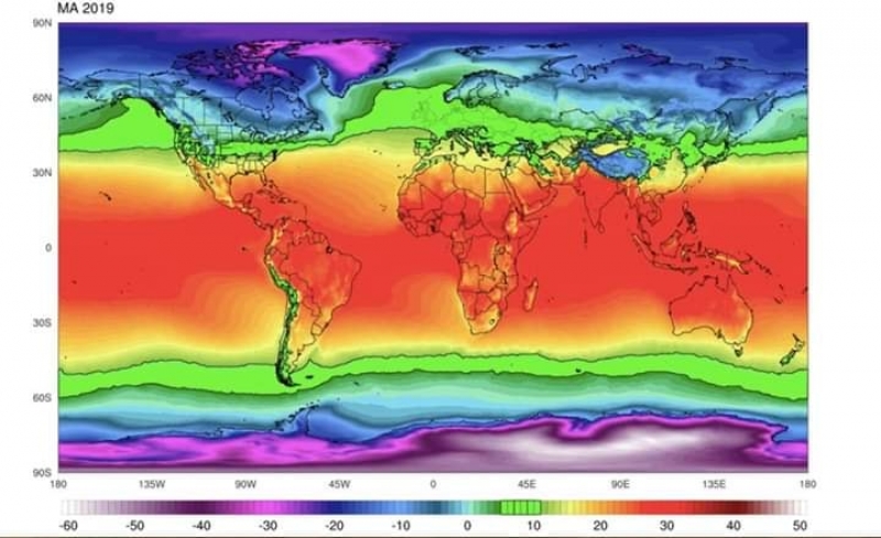 โดยใช้ข้อมูลแบบจำลองทางอากาศในการทำนาย และระบุพื้นที่ที่ในอีกไม่กี่สัปดาห์ข้างหน้าจะมีสูงต่อการเกิดการกระจายครั้งใหญ่ / 6 ภาพประกอบภาพบน คือภาพแผนที่ในการแพร่กระจายปัจจุบัน สังเกตในวงกลมพื้นที่การแพร่กระจาย เทียบกับระดับสีที่บอกถึงอุณหภูมิของแต่ละพื้นที่