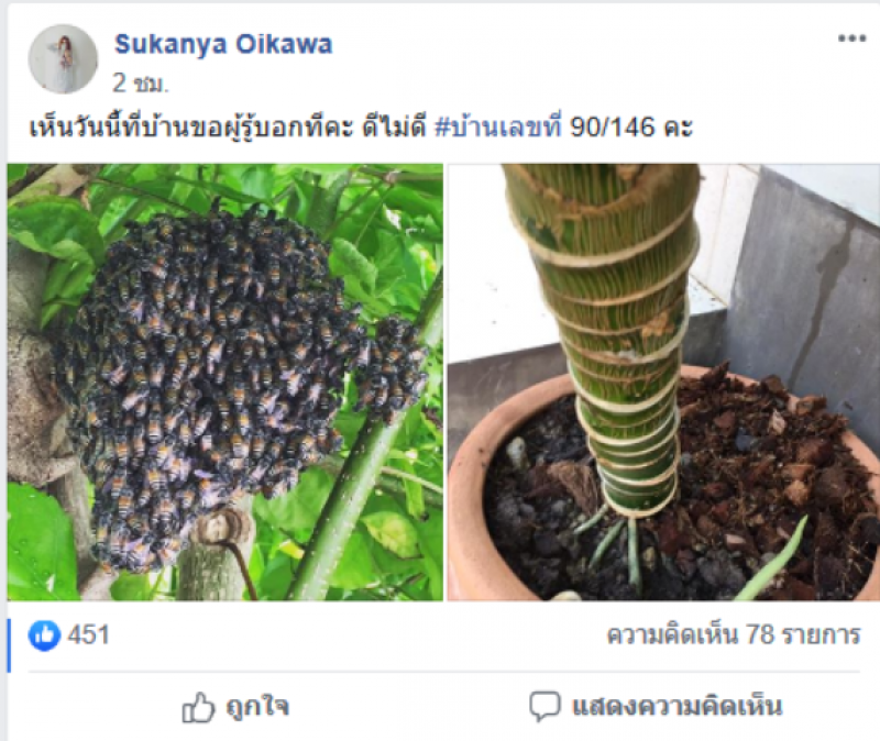สาวสวยโพสต์ผึ้งเข้ามาทำรังที่บ้าน โซเชียลแห่ซื้อเลขที่บ้าน