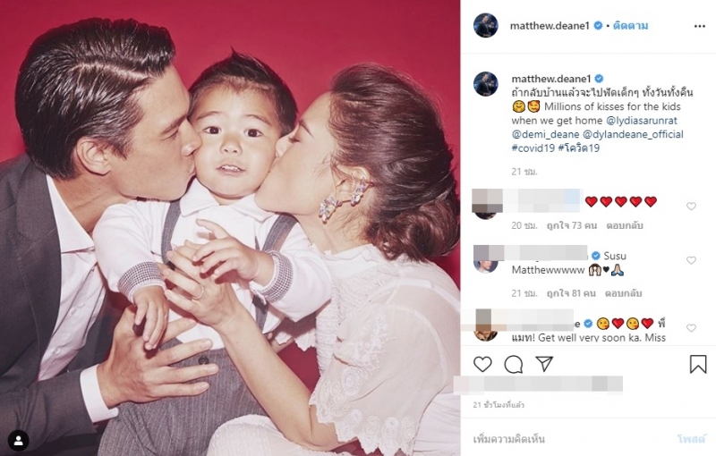 จากกรณีที่ แมทธิว ดีน ได้ออกมาโพสต์ประกาศผ่านไอจีว่าตนติด CD-19 จนต่อมาภายหลังทางภรรยาของ แมทธิว อย่างคุณ ลิเดีย ศรัณย์รัชต์ ก็ได้ออกมาโพสต์ผลตรวจแล้วว่าตนเองติด CD-19 กับสามีเช่นเดียวกัน เพราะใกล้ชิดกัน