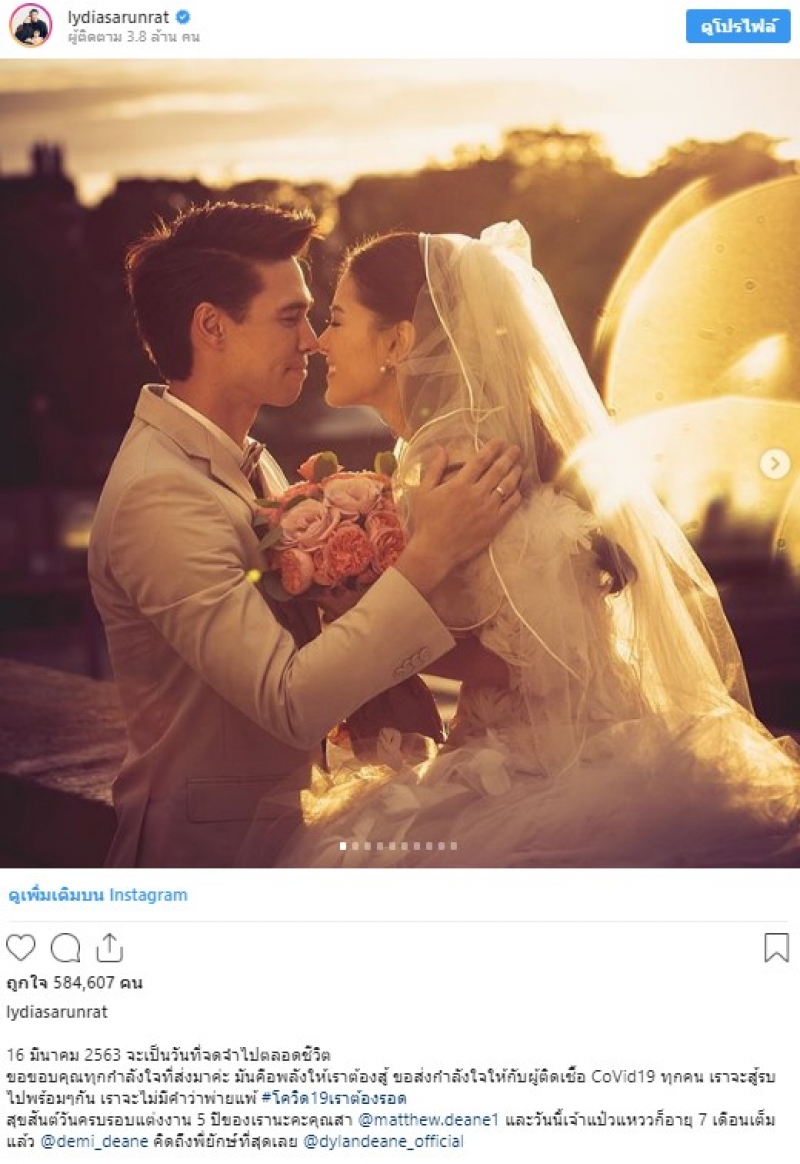 และที่ซ้ำร้ายไปกว่านั้นก็คือวันที่สาวลิเดีย พบว่าตนเองติด CD-19 16 มีค 63 ก็เป็นวันครบรอบแต่งงาน 5ปีของทั้งคู่อีกด้วย โดยสาวลิเดียโพสต์ภาพพรีเวดดิ้ง พร้อมแคปชั่น 16 มีนาคม 2563 จะเป็นวันที่จดจำไปตลอดชีวิต
