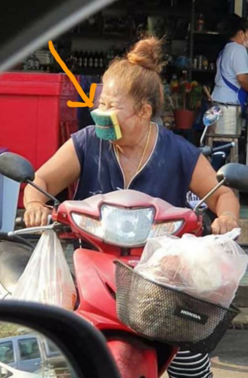 ล่าสุดในโลกออนไลน์ ได้มีการกล่าวถึงภาพของคุณป้าท่านหนึ่ง ที่ได้นำฟองน้ำล้างจอน มาประยุกต์ใช้แทนหน้ากากอนามัย สะท้อนให้เห็นถึงการขาดแคลนหน้ากากอนามัยได้เป็นอย่างดี เพราะถึงแม้บางที่จะมีขาย แต่ก็ยังพบว่าราคาแพง ส่วนที่ขายราคาถูกนั้น ก็มีไม่ทั่วถึง