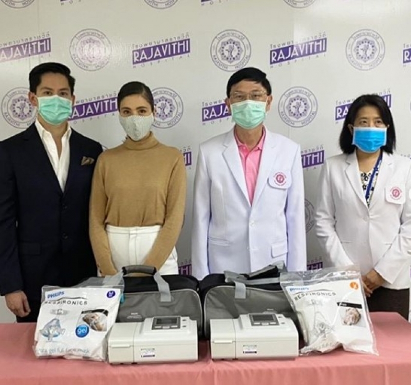 ศรีริต้า ควง ไฮโซ กรณ์ ร่วมบริจาคเครื่องช่วยหายใจ ให้โรงพยาบาลราชวิถี