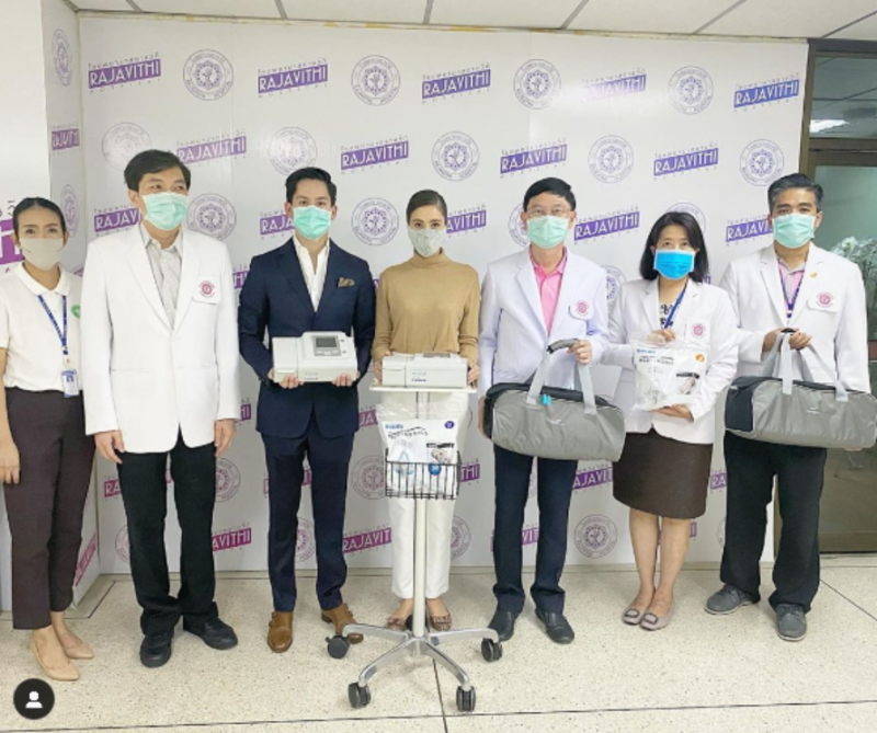 โดยได้มีการโพสต์ในไอจีระบุว่า วันนี้เราสองคนขอเป็นส่วนเล็กๆในการช่วยทีมแพทย์พยาบาลผ่านวิกฤติ covid 19 ด้วยการบริจาคเครื่องช่วยหายใจชนิดแรงดันบวก 2 ระดับ จำนวน 2 เครื่อง ให้กับโรงพยาบาลราชวิถี ทั้งนี้ทางโรงพยาบาลยังต้องการอีกหลายเครื่องนะครับ ใครมีจิตศรัทธาสามารถช่วยเหลือได้ตามกำลัง รายละเอียดการบริจาคอยู่ในภาพครับ