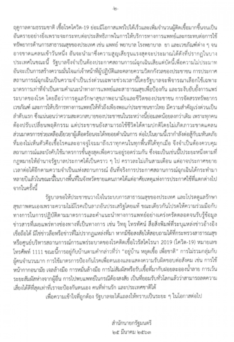 ยังไม่เคอร์ฟิว รายละเอียดประกาศ สถานการณ์ฉุกเฉิน